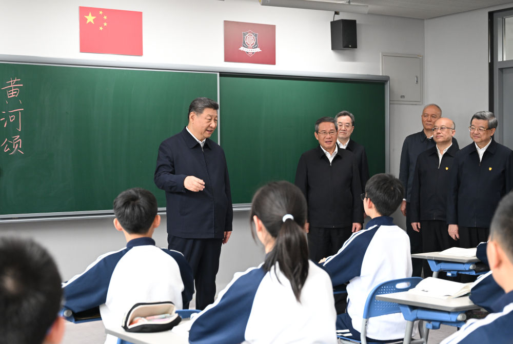 3月23日,中共中央总书记、国家主席、中央军委主席习近平在河北雄安新区考察,并主持召开深入推进雄安新区高质量建设和发展座谈会。这是23日上午,习近平在北京四中雄安校区考察时,走进教室同师生亲切交谈。新华社发(盛佳鹏 摄) 北京市援建的北京四中雄安校区2023年8月投入使用,现有学生380多人。教学楼里,学生们正在上课。习近平走进初一(2)班教室,同师生交谈,了解教学情况。他希望把北京四中办学的好经验好做法带过来,用心用情呵护孩子们身心健康,促进孩子们全面发展。